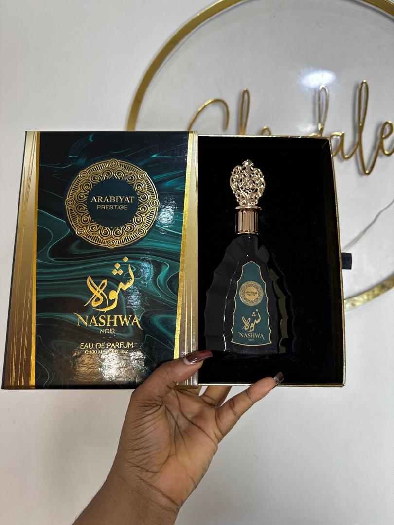 - Nashwa Noir by Arabiyat Prestige is a fragrance for women and men. Nashwa Noir was launched in 2023. The nose behind this fragrance is House of My Perfumes. Top notes are Bergamot, Cinnamon, Nutmeg and Bark; middle notes are Nagarmotha and Geranium; base notes are Black Musk, Leather, Oud, Patchouli and Saffron.